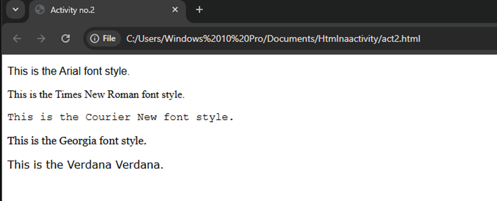 <p style=”font-family: Verdana;”>This is the Verdana Verdana.</p>