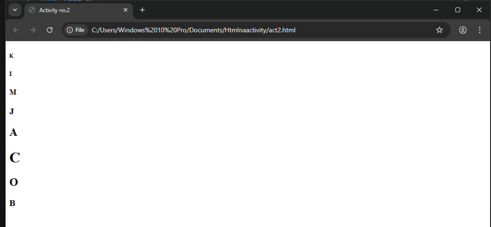 Print your name to the screen with every letter being a different heading size.